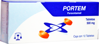Paracetamol tabletas 750 mg, caja con 10 tabletas.